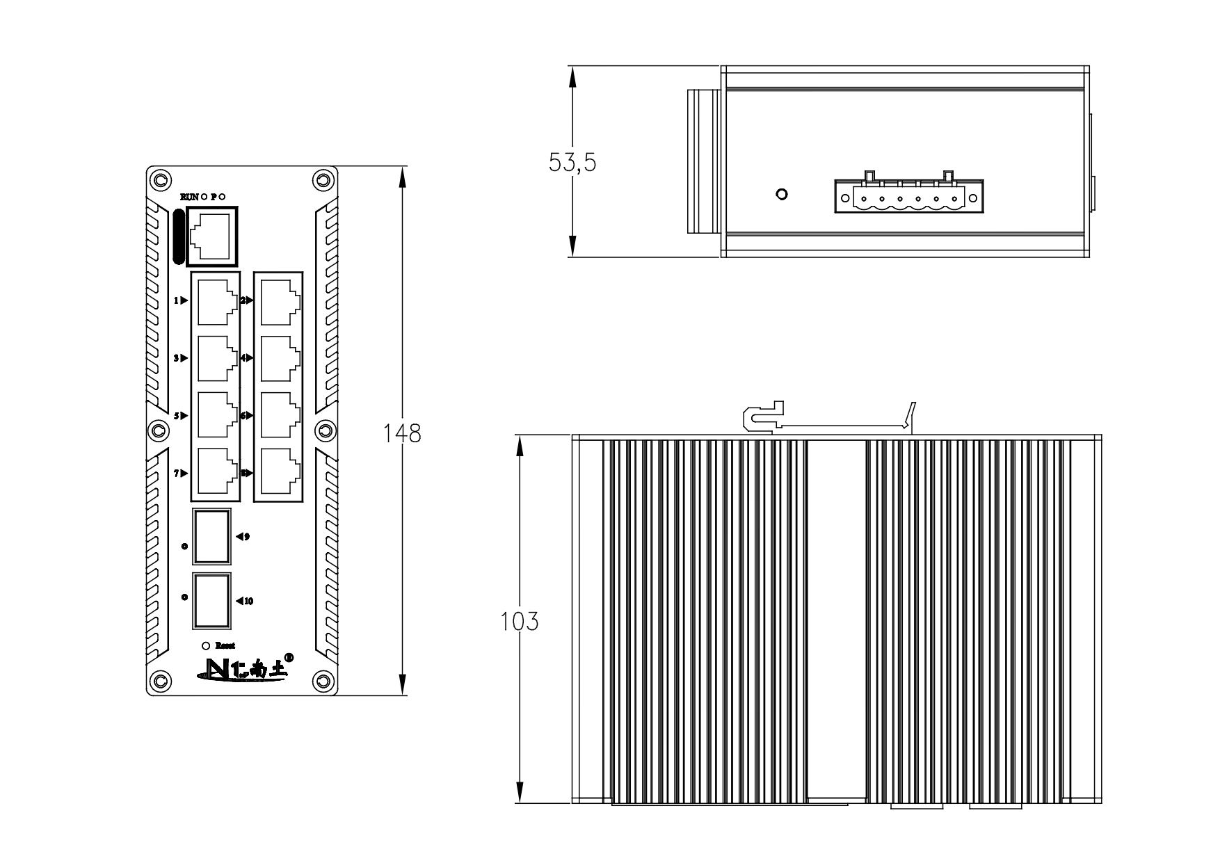 工業(yè)級POE(NT品牌)千兆網(wǎng)管2個SFP光口8個電口(8POE),導軌式-DC48~57V供電-寬溫(-40℃-85℃)-支持環(huán)網(wǎng)(STP/RSTP/MSTP/ERPS)-WEB/CLI管理-SNMP-VLAN。默認不含AC電源適配器和SFP光模塊。 |