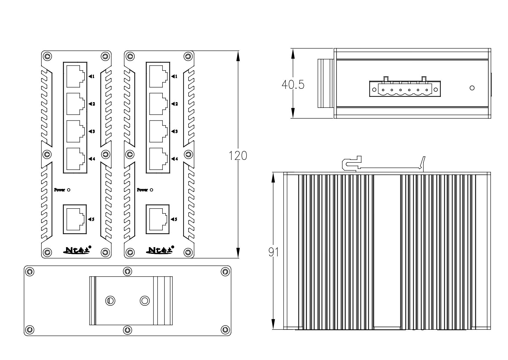 工業(yè)級(jí)POE(NT品牌)百兆非網(wǎng)管5電,導(dǎo)軌式-DC48~57V供電-寬溫(-40℃-85℃)。默認(rèn)不含AC電源適配器。 |