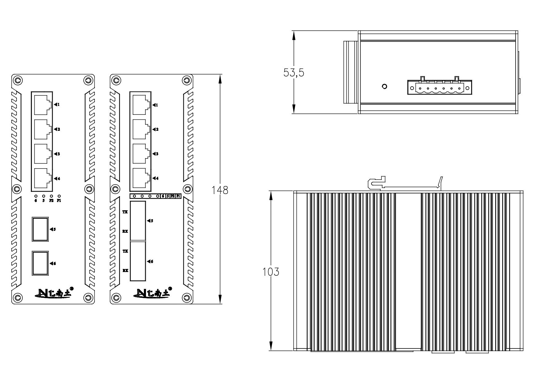 工業(yè)級(jí)POE(NT品牌)百兆非網(wǎng)管2光4電(4POE)-SFP接口-導(dǎo)軌式-DC48~57V供電-寬溫(-40℃-85℃)。默認(rèn)不含AC電源適配器和不含光模塊。 |