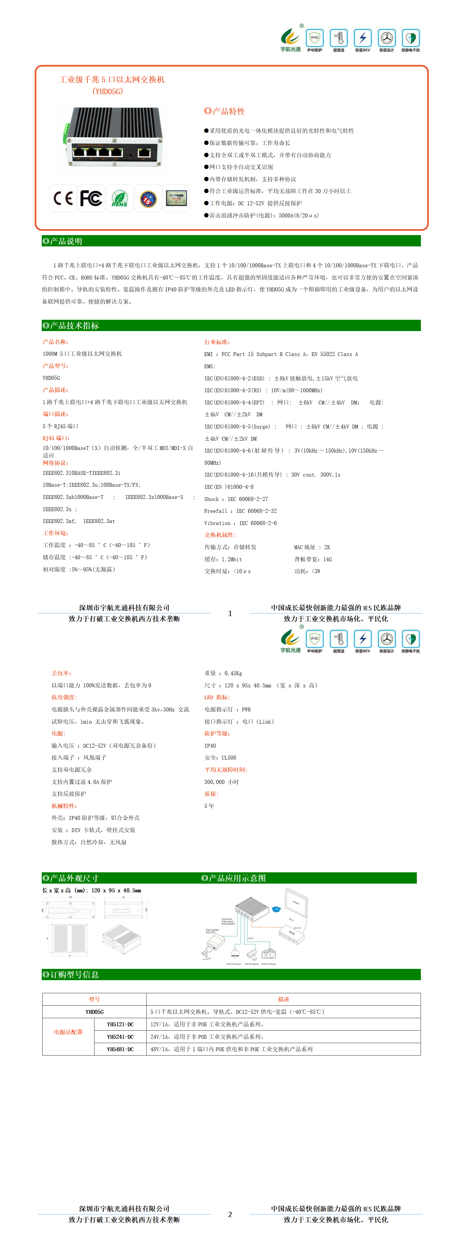 1路千兆上聯(lián)電口+4路千兆下聯(lián)電口工業(yè)級以太網(wǎng)交換機,支持1個10/100/1000Base-TX上聯(lián)電口和4個10/100/1000Base-TX下聯(lián)電口。產(chǎn)品符合FCC、CE、ROHS標(biāo)準(zhǔn)。YHD05G交換機具有-40℃~85℃的工作溫度,具有超強的堅固度能適應(yīng)各種嚴(yán)苛環(huán)境,也可以非常方便的安置在空間緊湊的控制箱中。導(dǎo)軌的安裝特性、寬溫操作及擁有IP40防護等級的外殼及LED指示燈,使YHD05G成為一個即插即用的工業(yè)級設(shè)備,為用戶的以太網(wǎng)設(shè)備聯(lián)網(wǎng)提供可靠、便捷的解決方案。